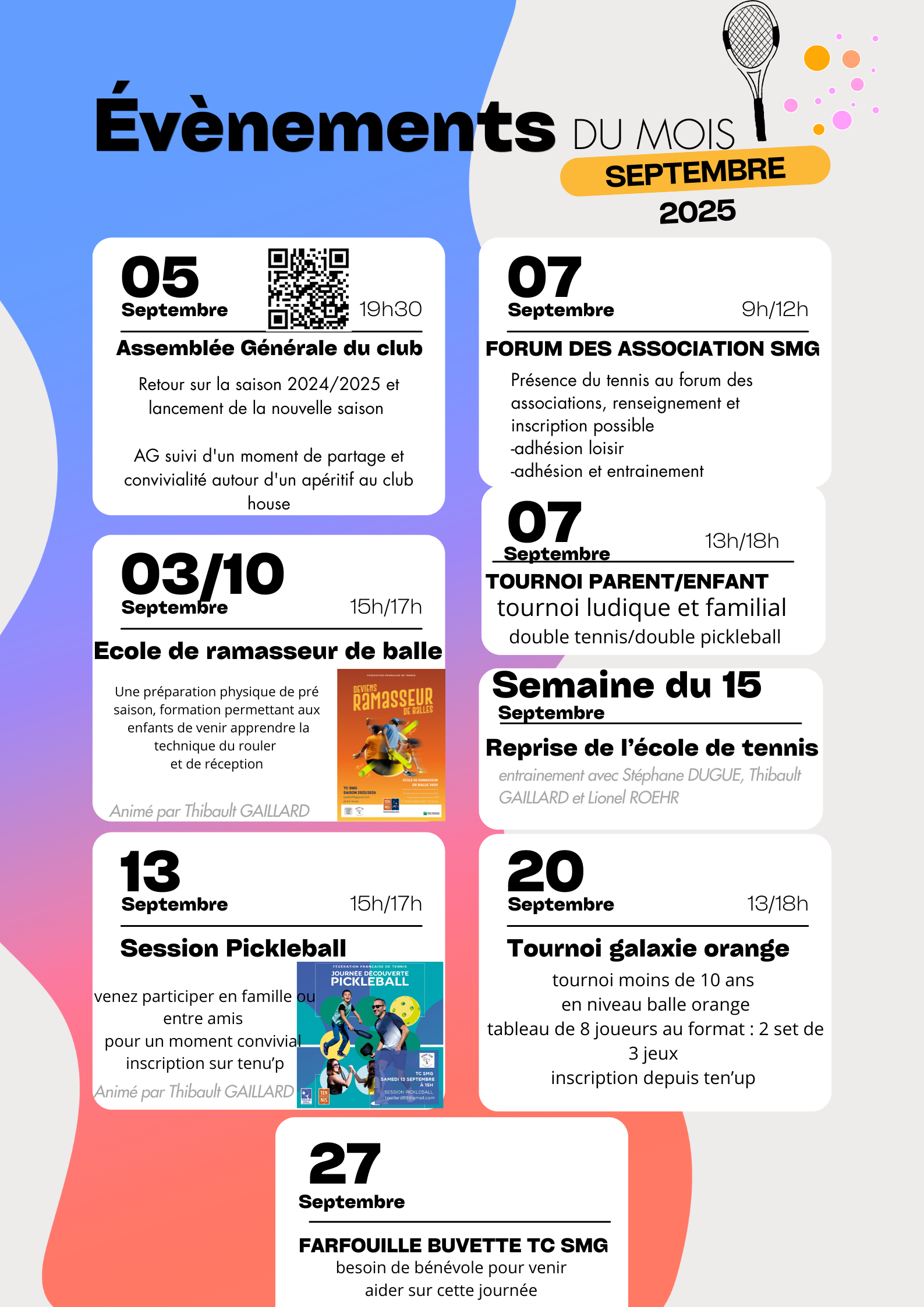 Planning du mois de septembre au TC SMG